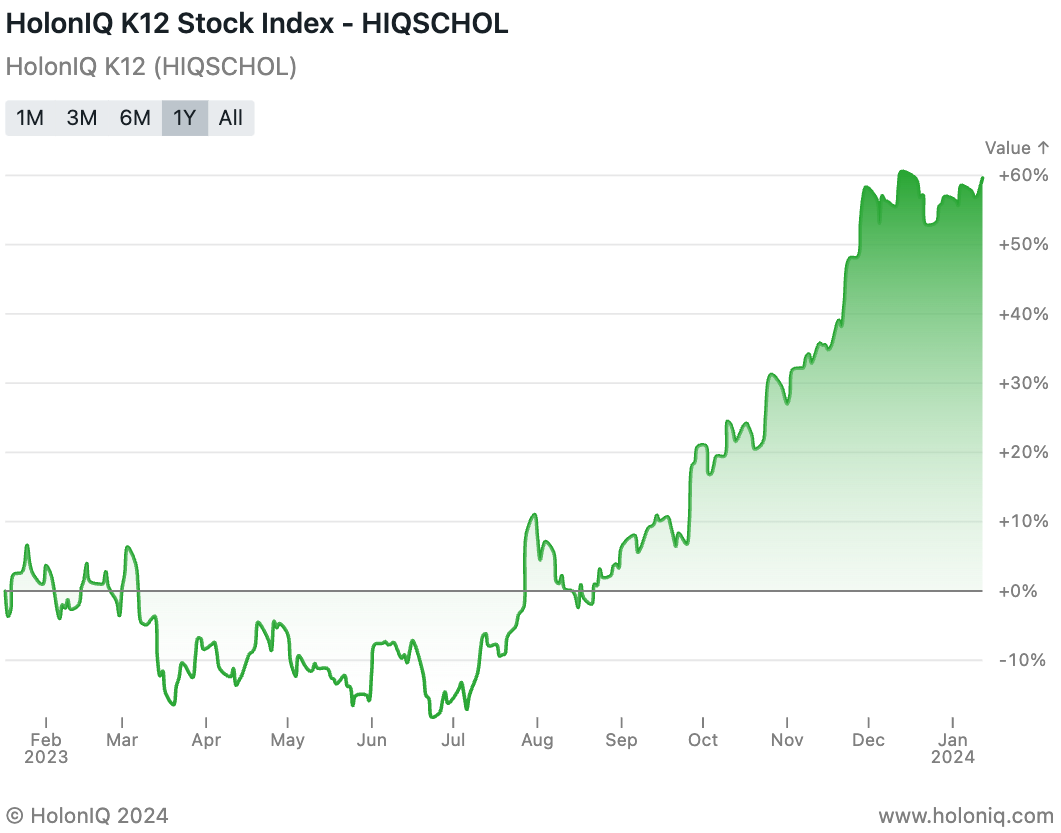 HolonIQ tracks over 300 listed education companies and has the most comprehensive coverage of education acquisitions and investments. We powered the world's first Education Technology ETF and soon we launch a range of Stock Indices to track the daily performance of early Childhood, K12, EdTech, Tutoring and Test Prep and Higher Education companies worldwide.