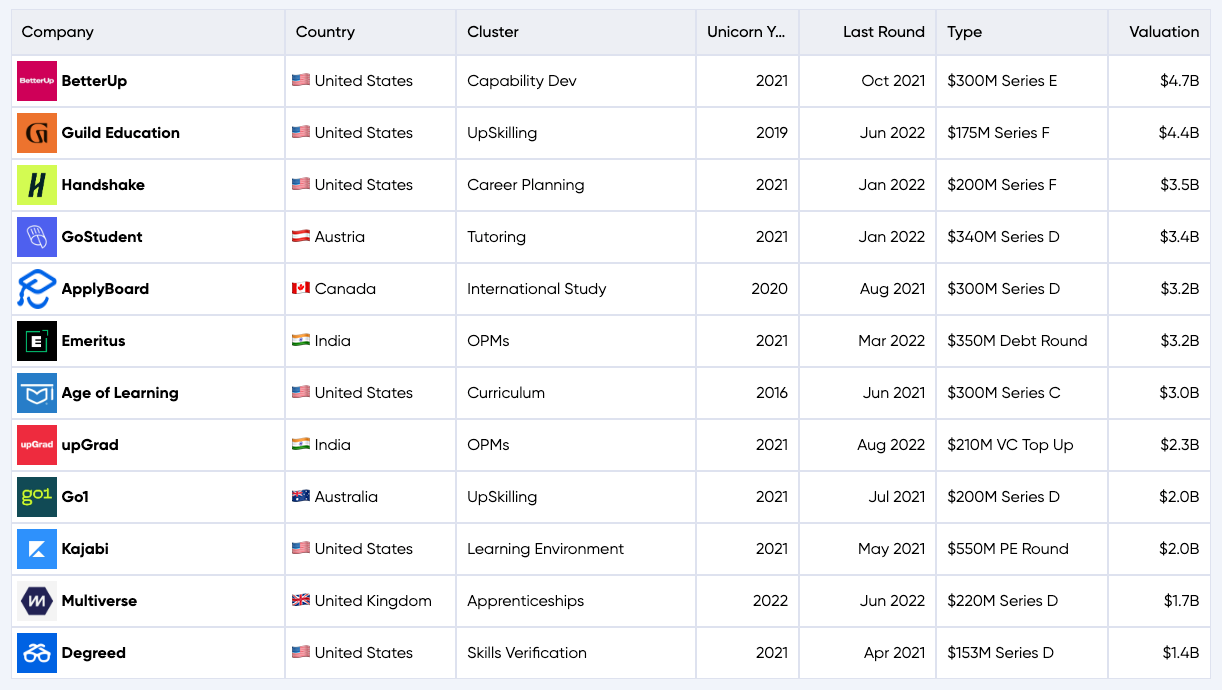 The Complete list of EdTech Unicorns, HolonIQ