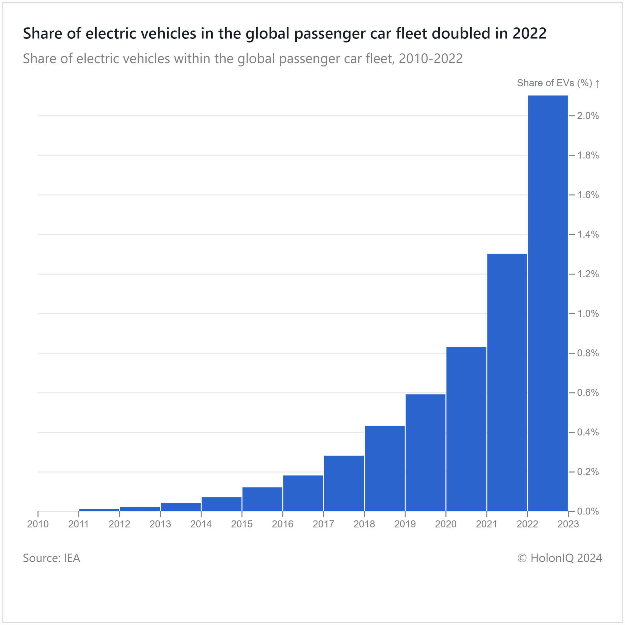 🚗 Electric Vehicles. The share of EVs in passenger car fleets doubled in 2022