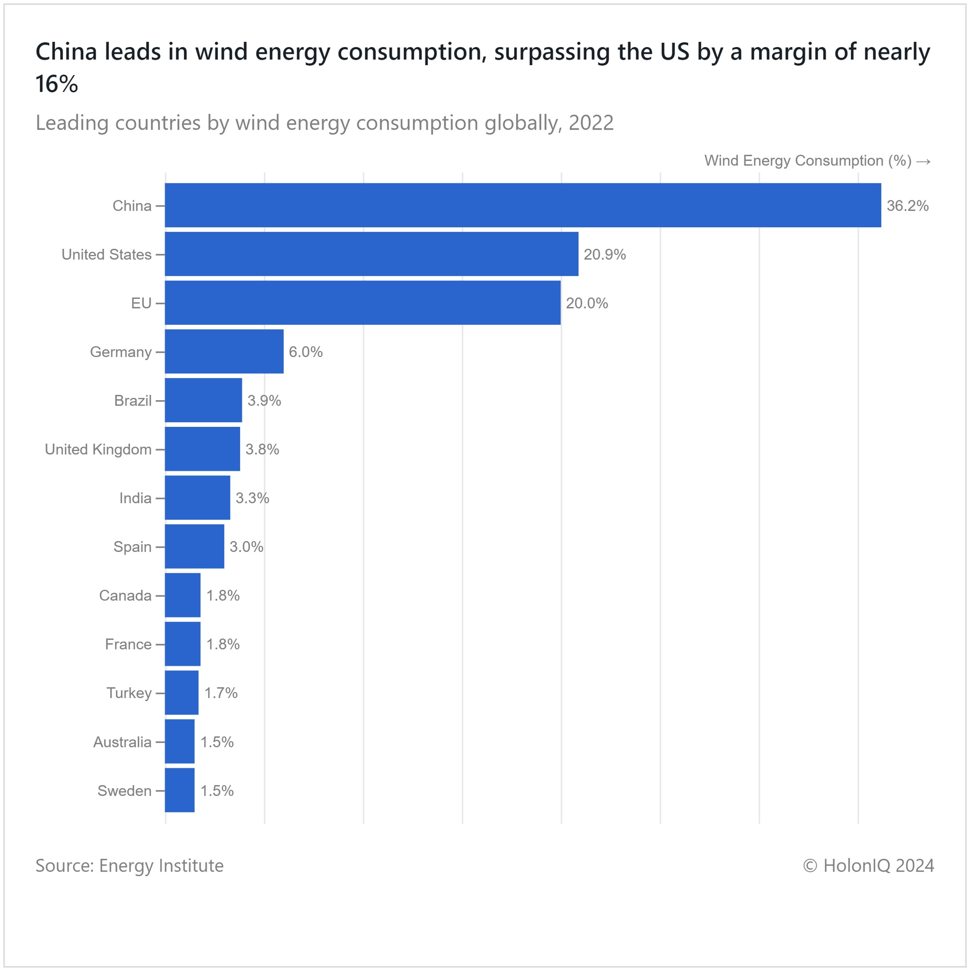 💨 Wind Energy. China surpasses US in wind energy consumption by 16%