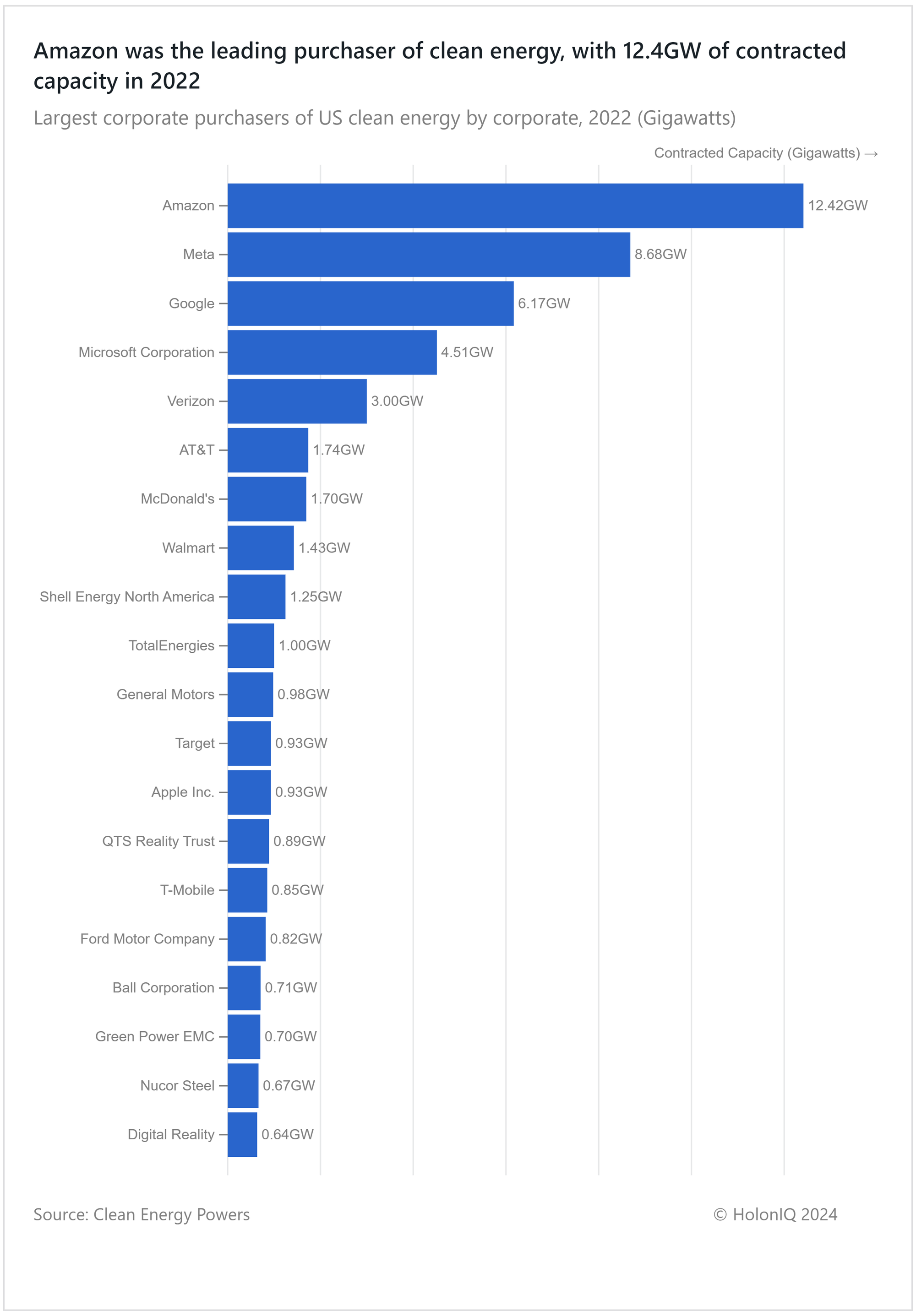 - π Clean Energy. 12GW of clean energy purchased by Amazon