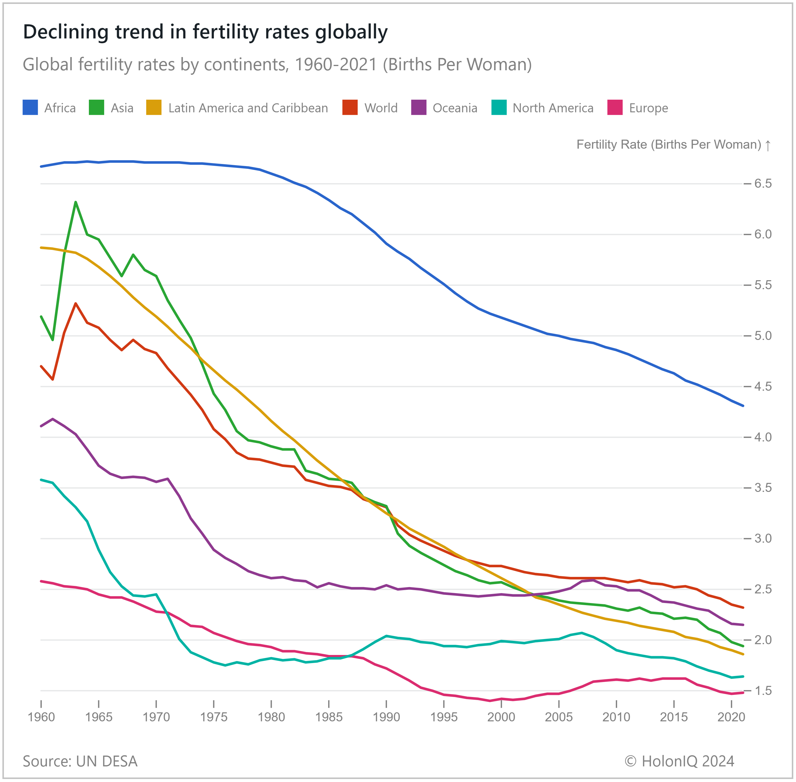 - 👶 Fertility Rates. 4.3 children per woman in Africa