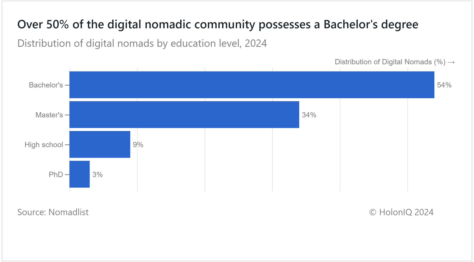 - 👨💻 Digital Nomads. 50%+ digital nomads hold Bachelor's degrees