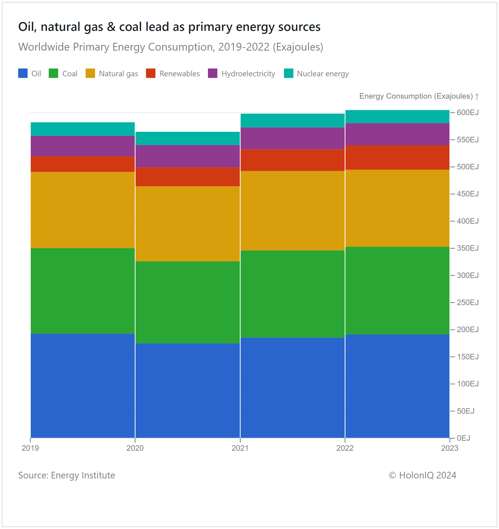 Worldwide, more than 60% of energy consumption is generated from fossil fuels like oil, coal, and natural gas. This trend is particularly prominent in regions such as China, the US, and India. The driving forces behind this phenomenon are the increasing demand for energy resulting from growing populations and the necessity for affordable energy, which fossil fuels offer, due to well-established infrastructure. However, rising global investments in renewables indicate a growing commitment to cleaner energy sources despite the high initial setup costs. This divide reflects the ongoing struggle between established technologies that make fossils cheaper, more convenient, and easier to find and the imperative to transition towards more environmentally friendly alternatives for a sustainable future.