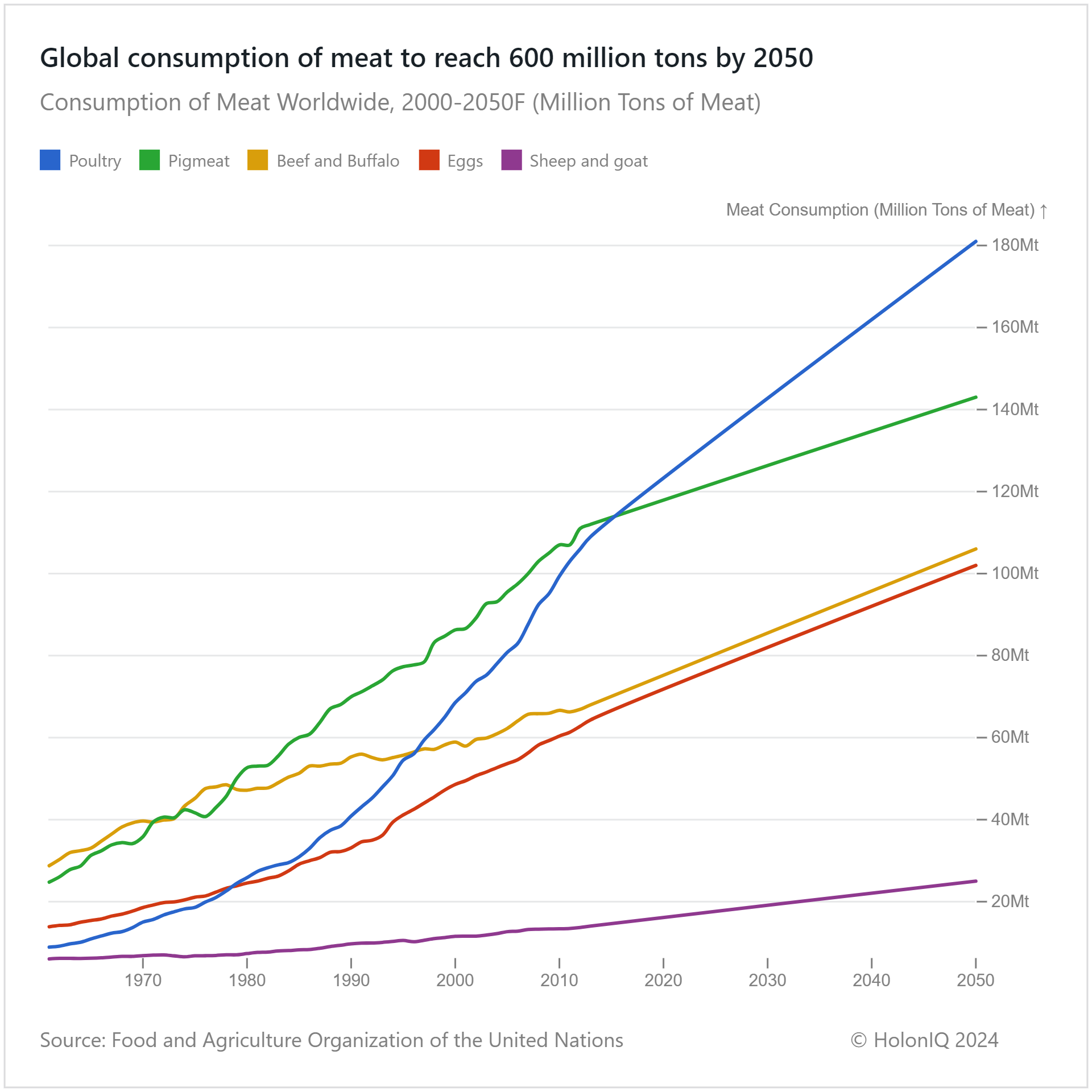 - 🦃 Meat Consumption. 600M tons in meat consumption by 2050