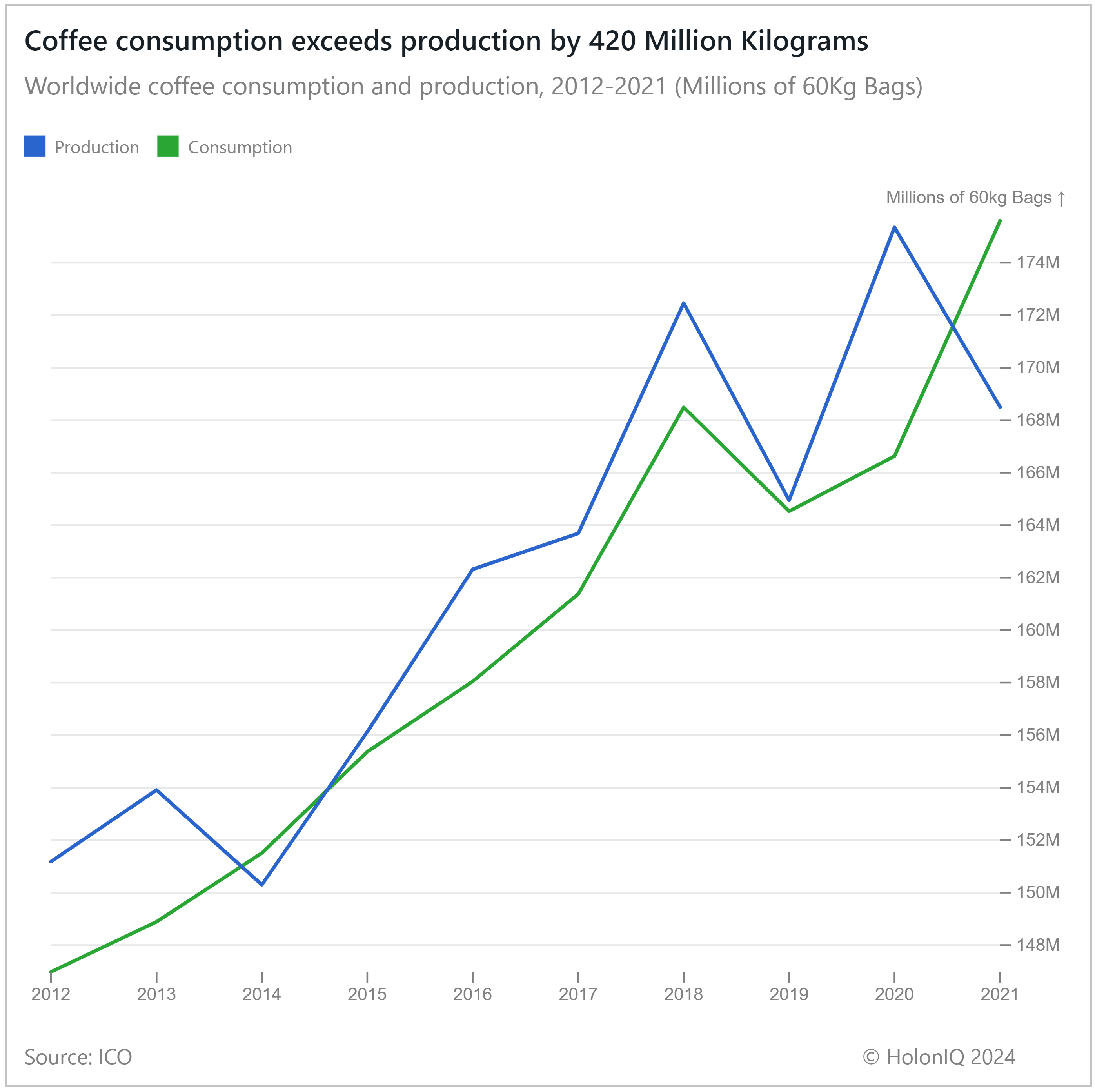 ☕ Coffee Consumption Exceeds Production by 420M kg