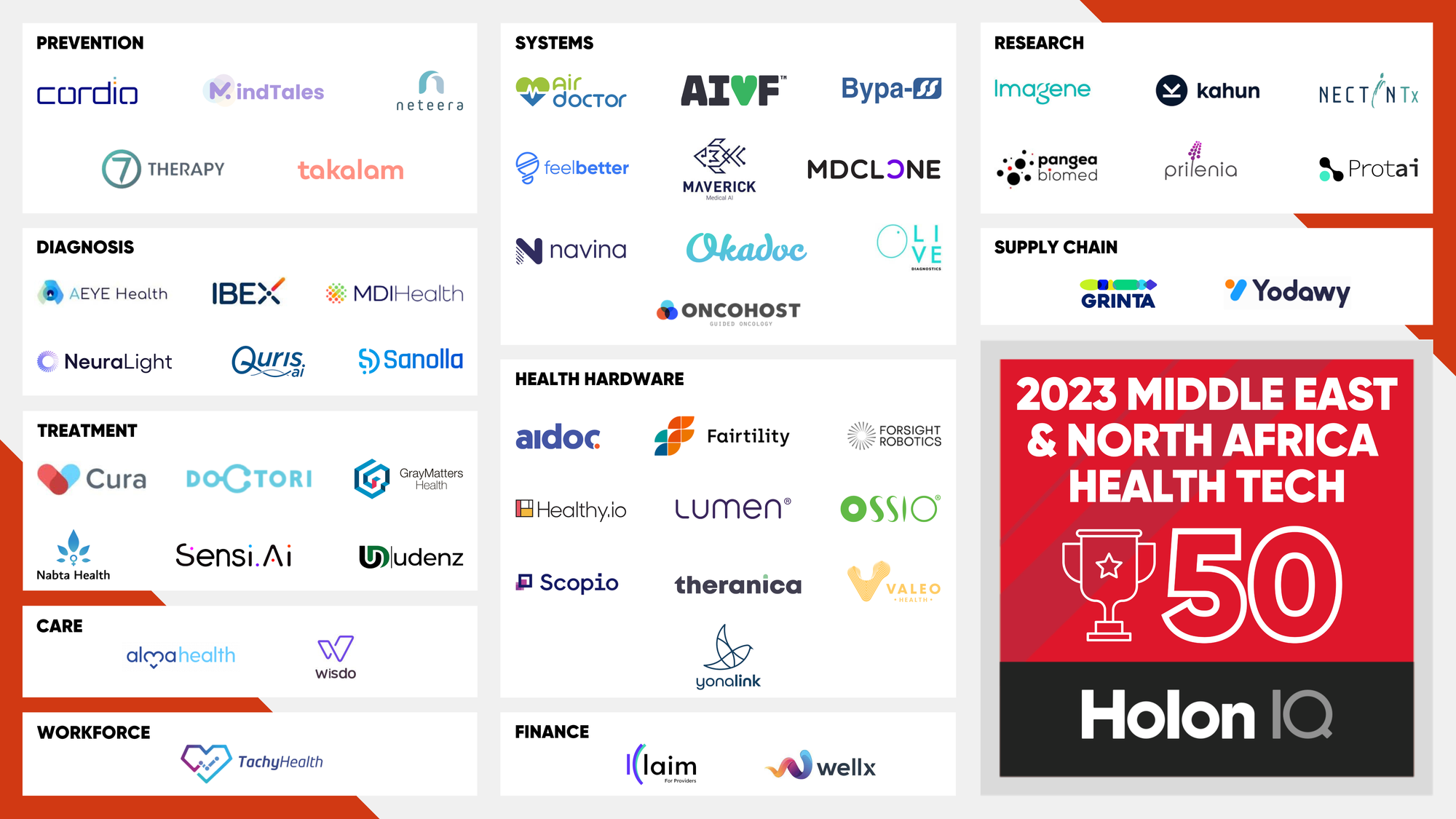 The 2023 Middle East and North Africa Health Tech 50 is HolonIQβs annual list of the region's most promising startups in digital health, biotech, drug discovery, and analytics.