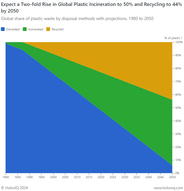 - ♻️ Plastic Waste. Global Plastic Incineration to Double to 50% and Recycling to 44% by 2050.