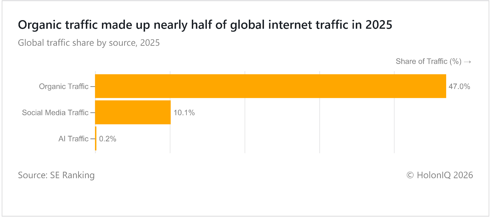 🤖 Artificial Intelligence. Organic traffic accounted for nearly 50% of the internet's traffic