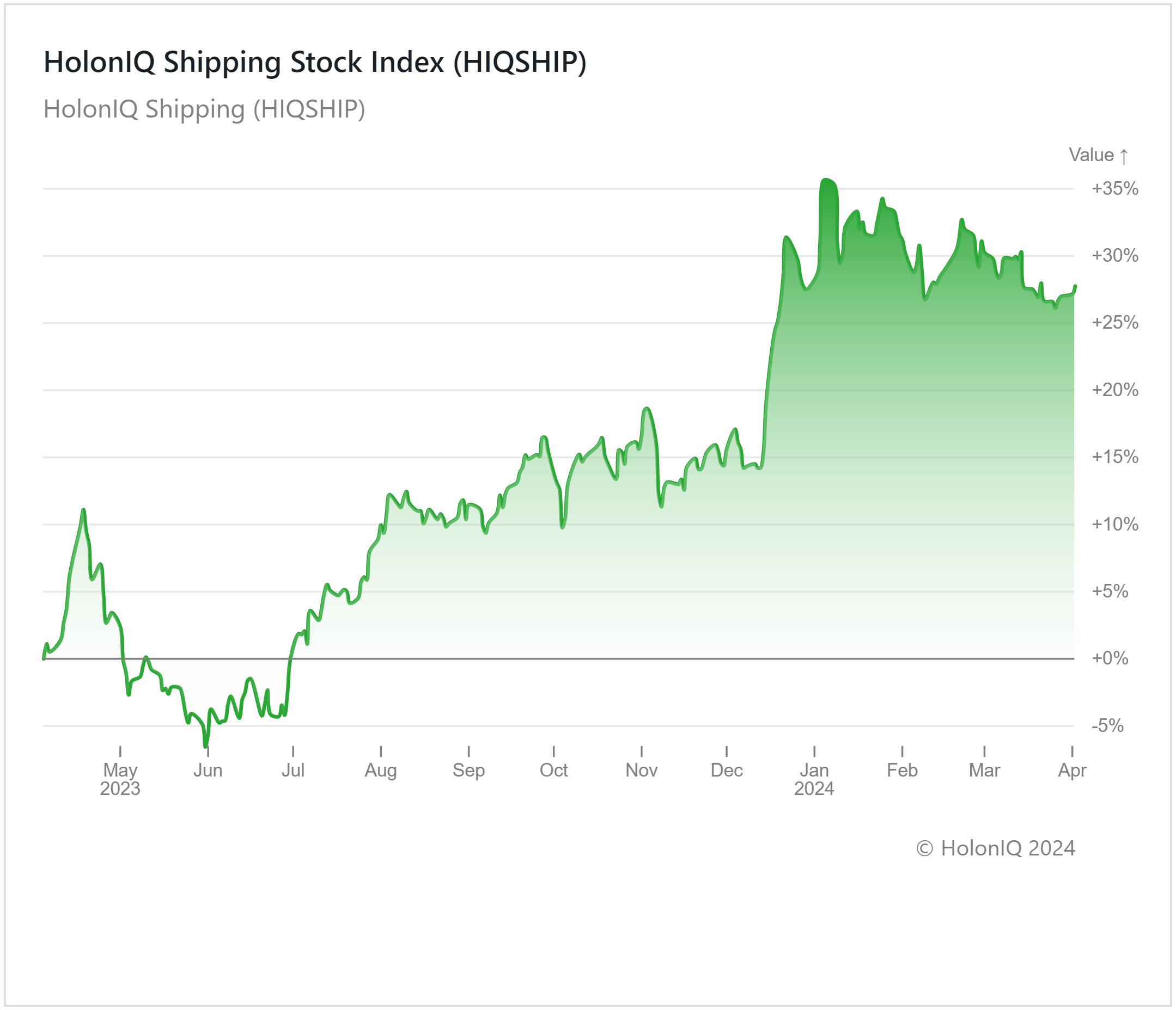 HolonIQ Shipping Stock Index (HIQSHIP) reflected a 27% increase over the past year, defying a turbulent year for the global transport industry. The shipping industry has seen a gradual recovery from the COVID-related downturn, with supply chain disruptions easing as port congestion and transport bottlenecks cleared out. Despite the subsequent drop in freight rates, optimism about a recovery in Chinese exports also improved sentiment.