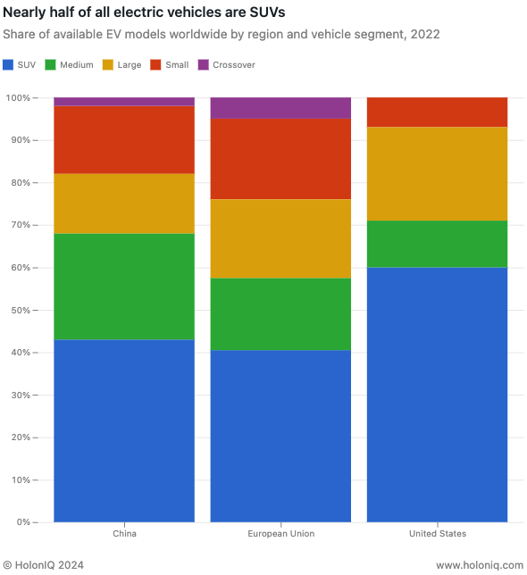 Small EVs still have a pretty decent jump in price over an Internal Combustion Engine (ICE) small car. The battery pack costs a lot. But Trucks and SUVs are already quite expensive, and the larger overall size means adding the additional battery pack (for closer range parity with an ICE vehicle) isn't as hard to do.