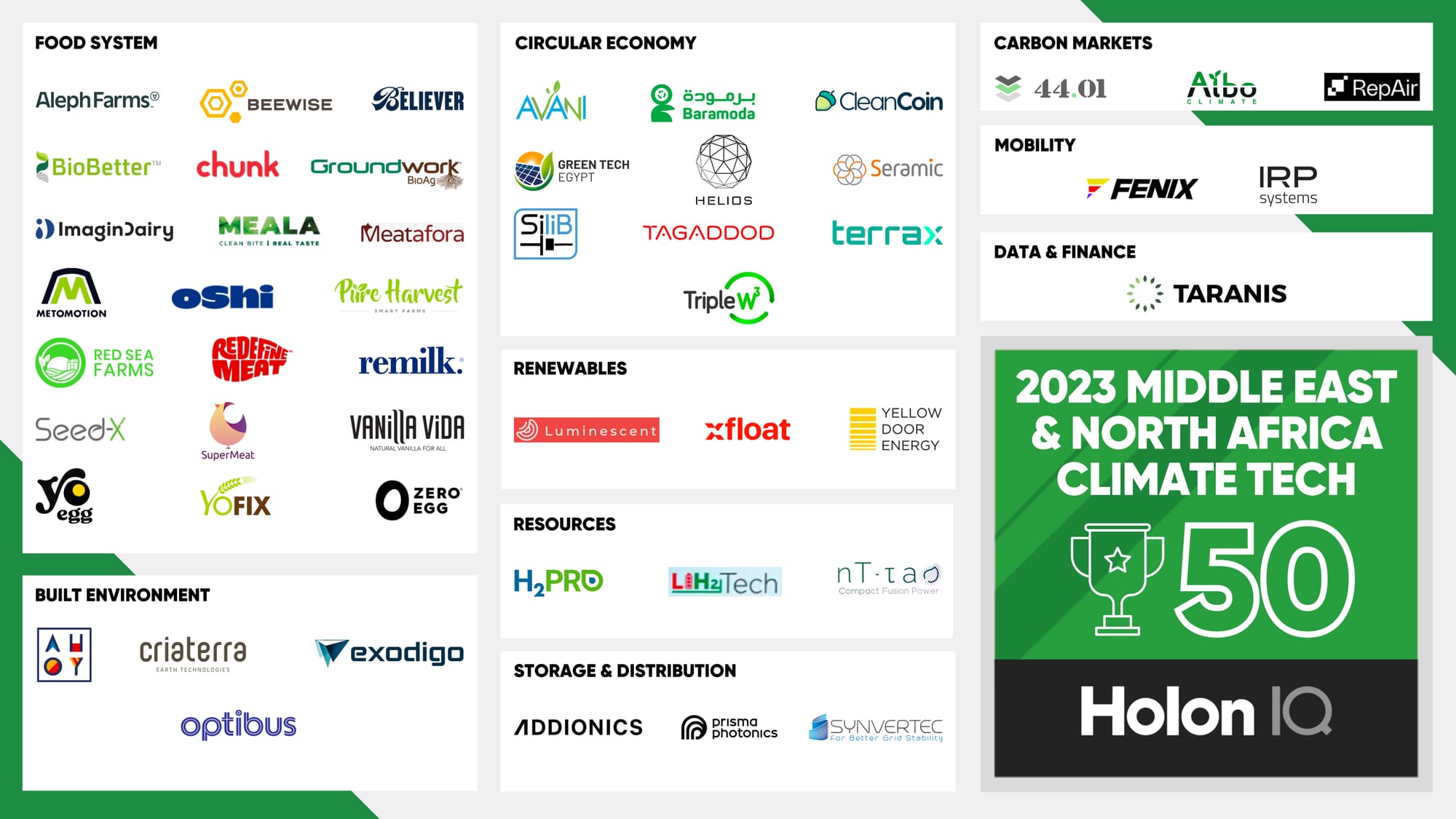 The MENA Climate Tech 50 is HolonIQβs annual list of the most promising startups working in clean energy, zero-emission mobility, and sustainability.