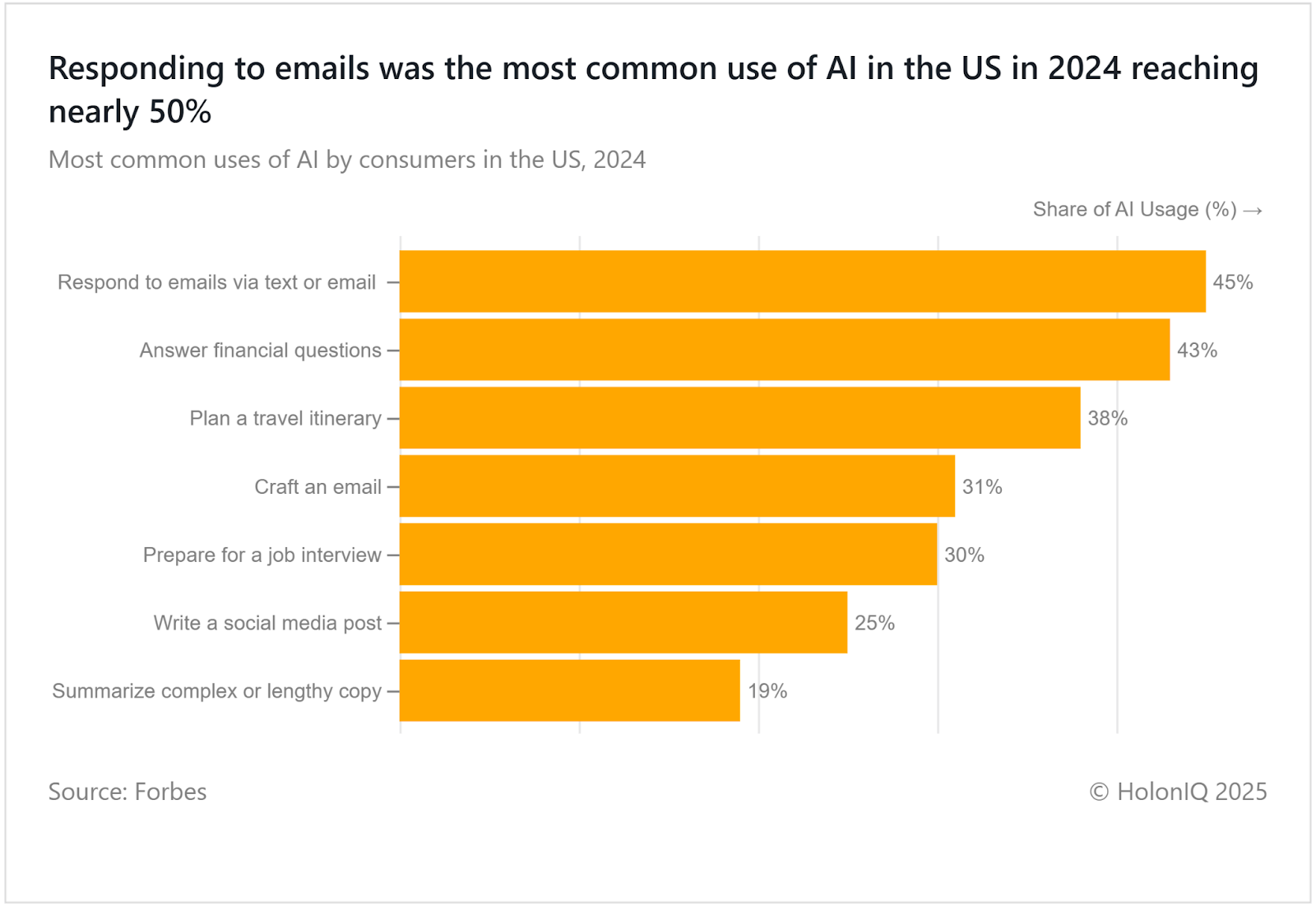 🤖 Artificial Intelligence. US consumers used AI mostly for email responses