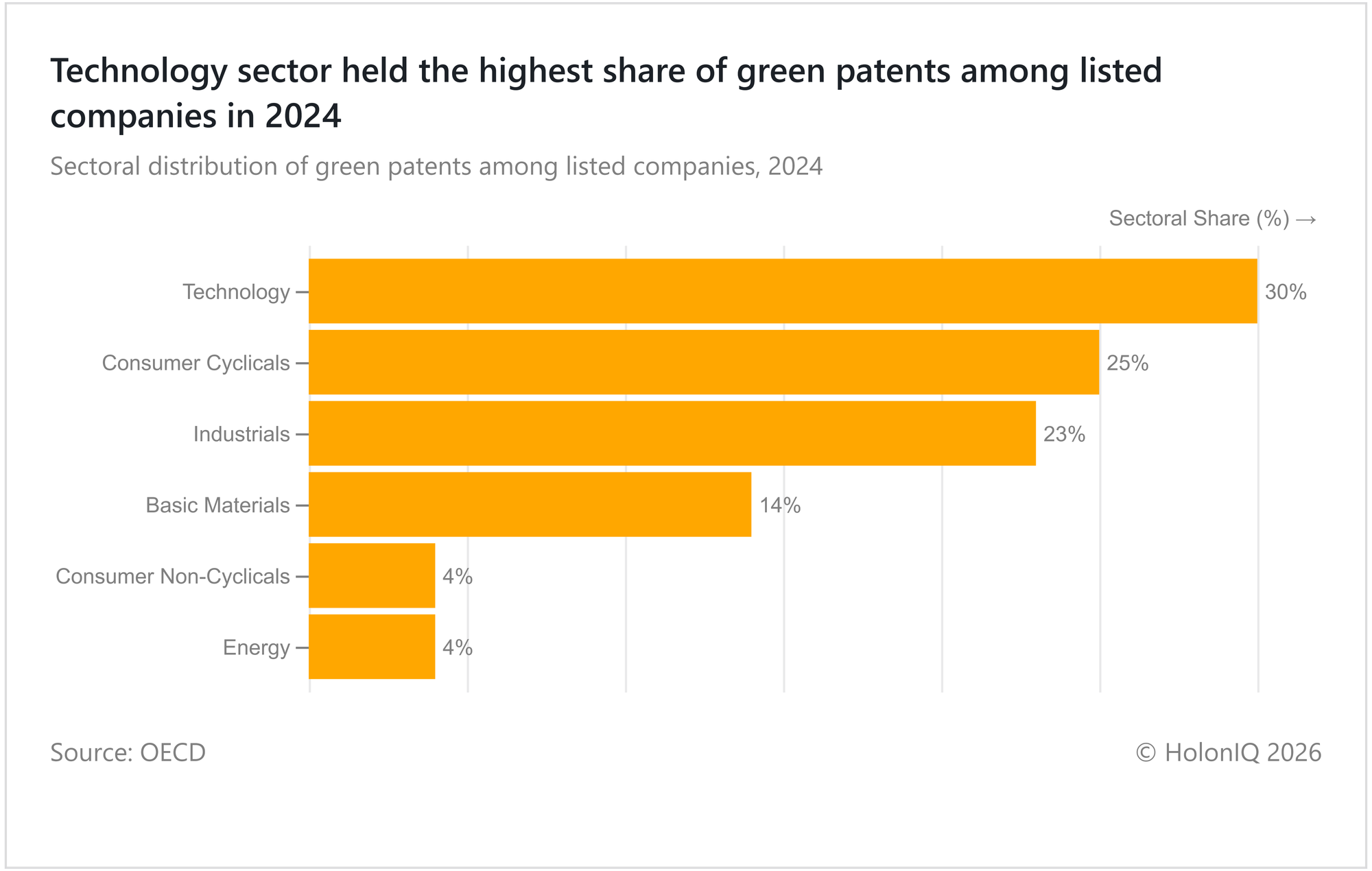 Green patent filings are led by the technology sector, which drives innovation across renewable energy, energy efficiency, and sustainable production solutions. Advances in AI optimisation, smart sensors, digital twins, and automation are helping firms design cleaner materials, cut energy use, and monitor emissions in real time, making tech a core enabler of sustainable innovation. As industries digitise operations to meet climate targets and disclosure rules, technology driven inventions naturally generate more patentable green solutions than traditional sectors.