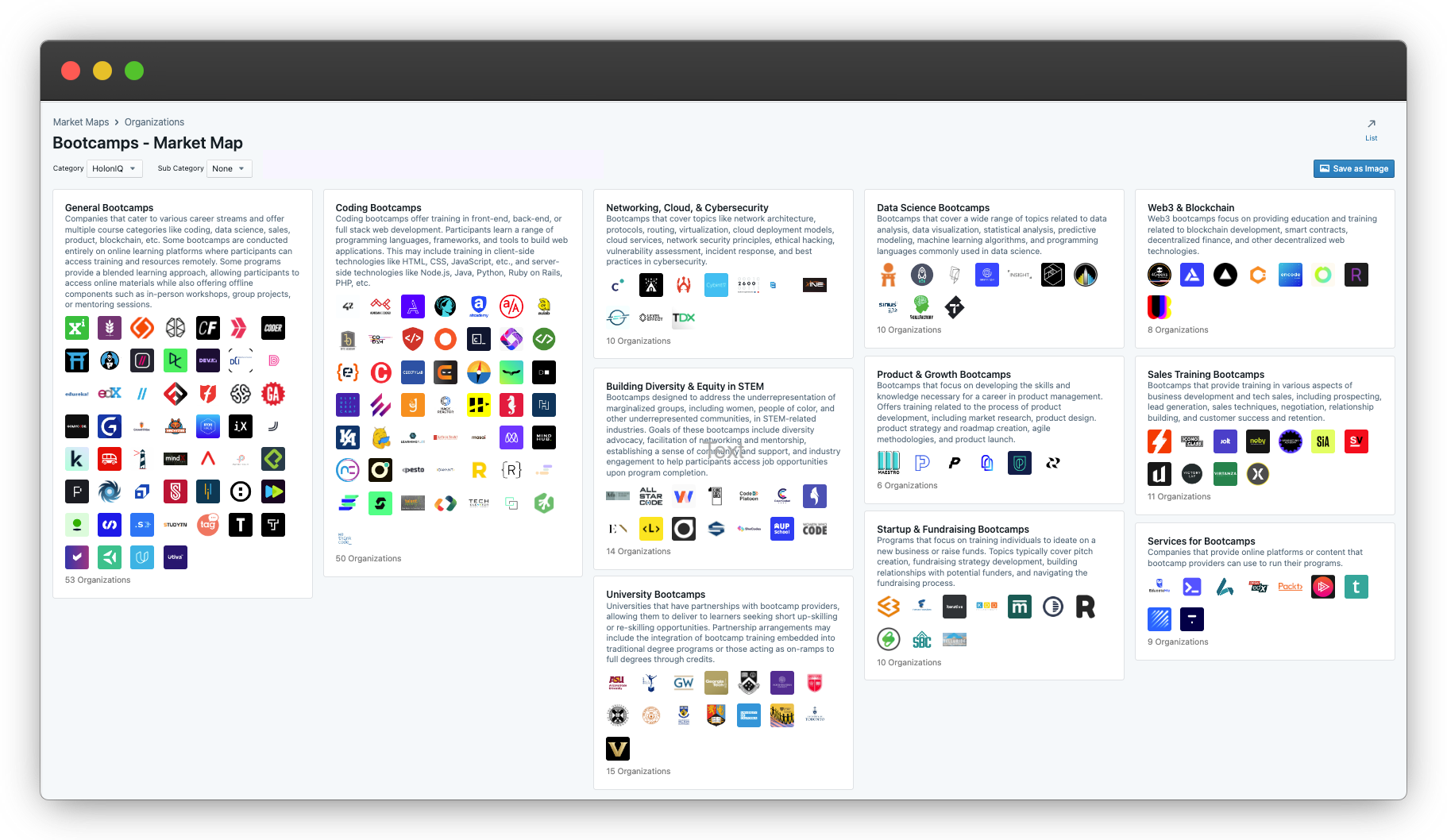 - ๐๏ธโโ๏ธ Bootcamps. Mapping 100+ global players across the landscape