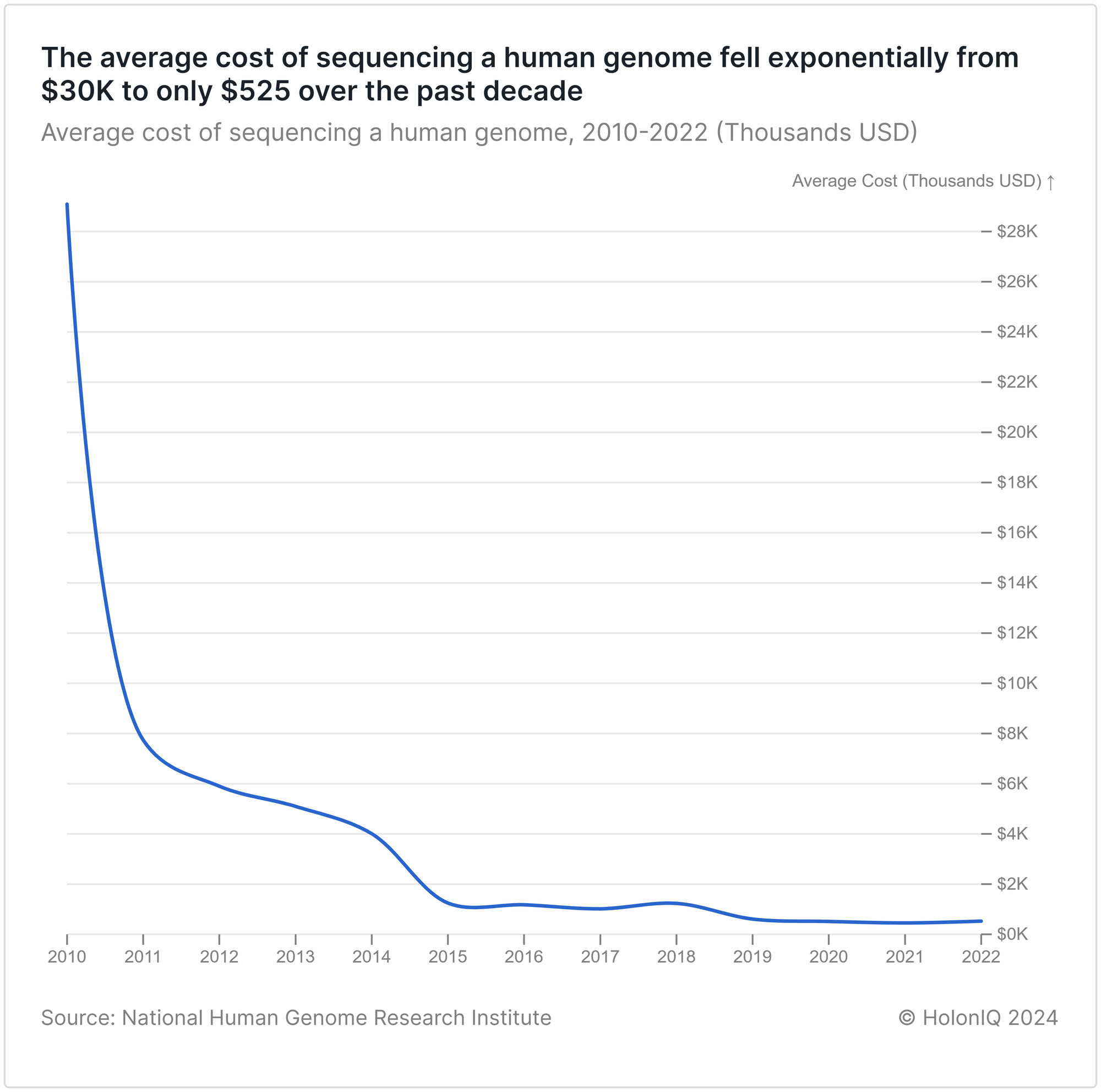 🧬 Genomics. Genome sequencing costs fall from millions to $525