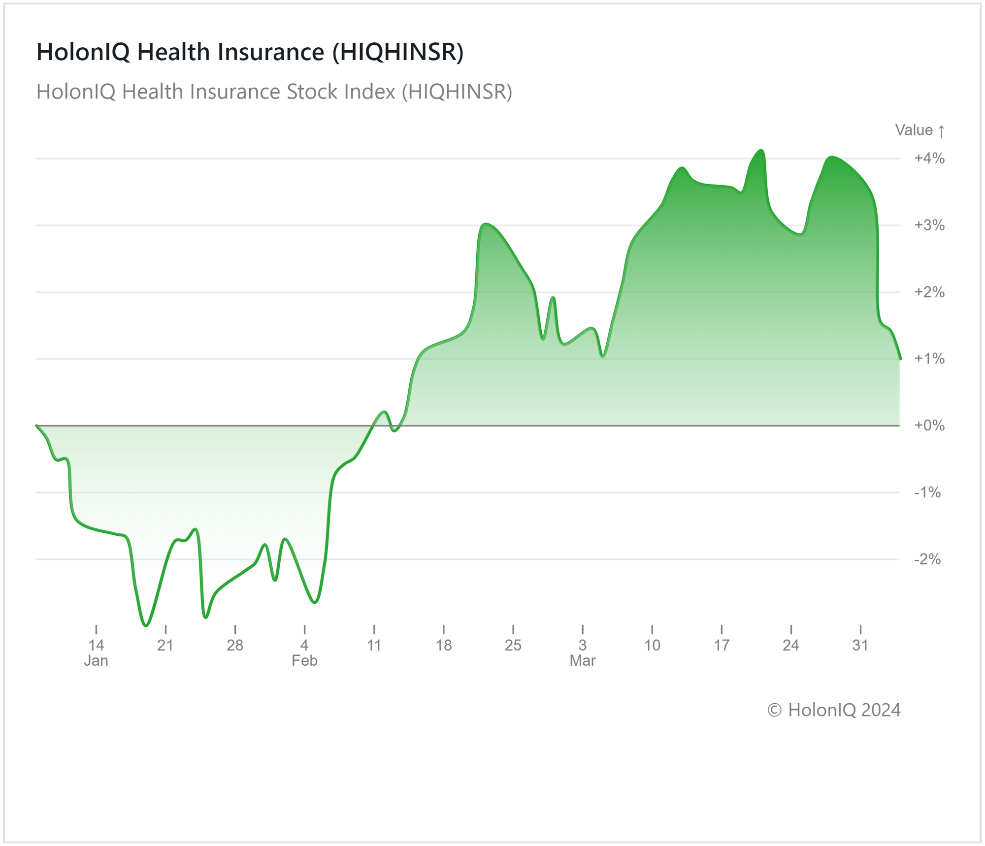 Despite a 30% rise year-on-year, HolonIQβs Health Insurance index has remained relatively flat over the past three months, registering 1% growth. February and March saw some positive moves, in contrast to the declines observed in January.