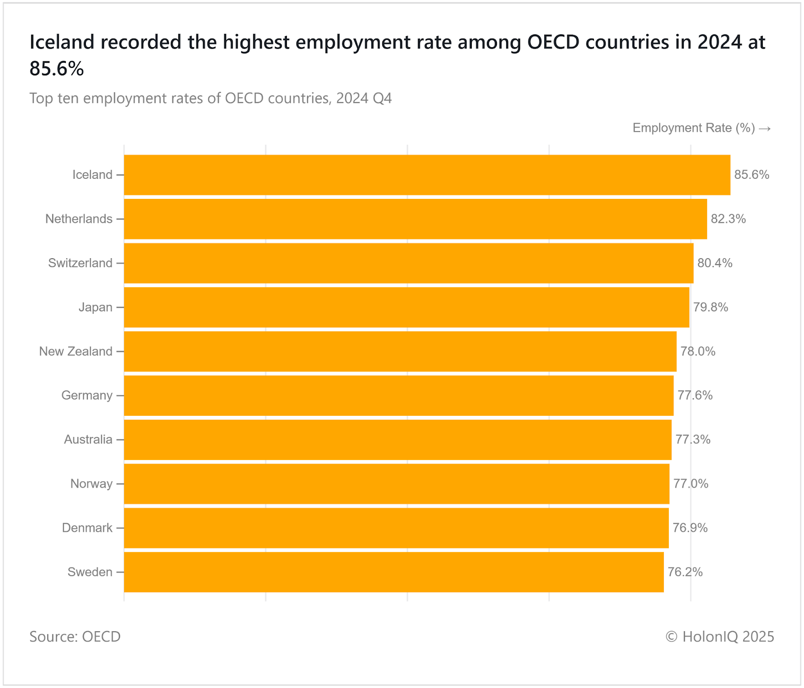 💼 Workforce. Iceland topped the employment rates in OECD countries