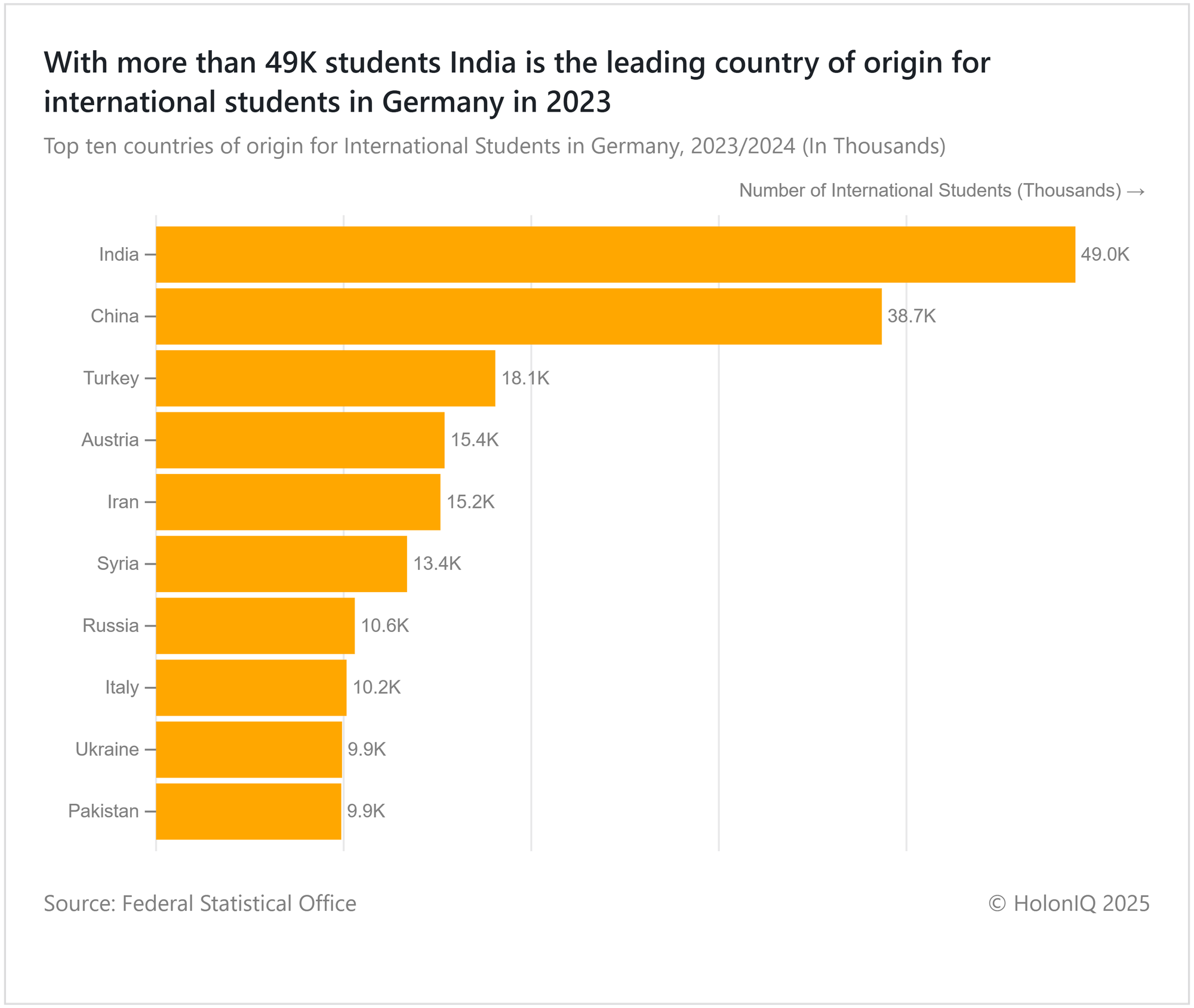 Indian student enrolment in Germany leads all countries with over 49K, significantly outpacing the second-largest cohort, China. This reflects a rapid upward trend in international student migration to Germany, surpassing enrolment projections. The move is driven by the country's world-class, tuition-free public universities, offering an attractive alternative to costlier study destinations. Furthermore, international students will now benefit from the Skilled Immigration Act, implemented by the Federal Office for Migration and Refugees (BAMF), increasing annual working days to 140.