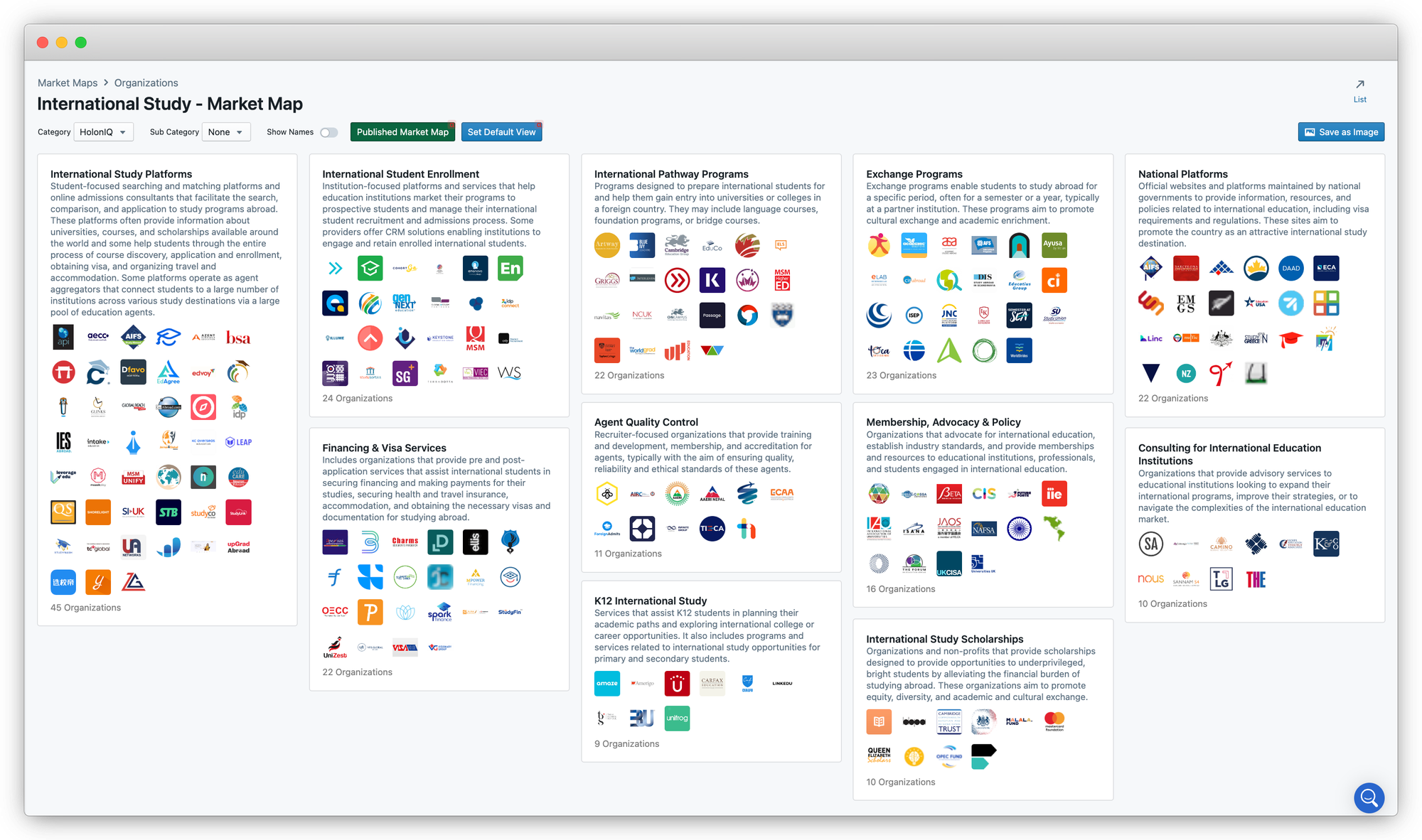 Technology enabled solutions are increasingly supporting students' international education journeys, from platforms such as ApplyBoard that streamline program search and application processes, to enrolment platforms such as Keystone Education that aid multiple applications, pathway programs preparing students for academic success in foreign universities, through to exchange programs such as Erasmus+ that foster cross-cultural experiences. National initiatives and services offer resources and support for international students, while agent quality control organizations monitor international agents activity, and Membership & Advocacy groups advocate for student interests.