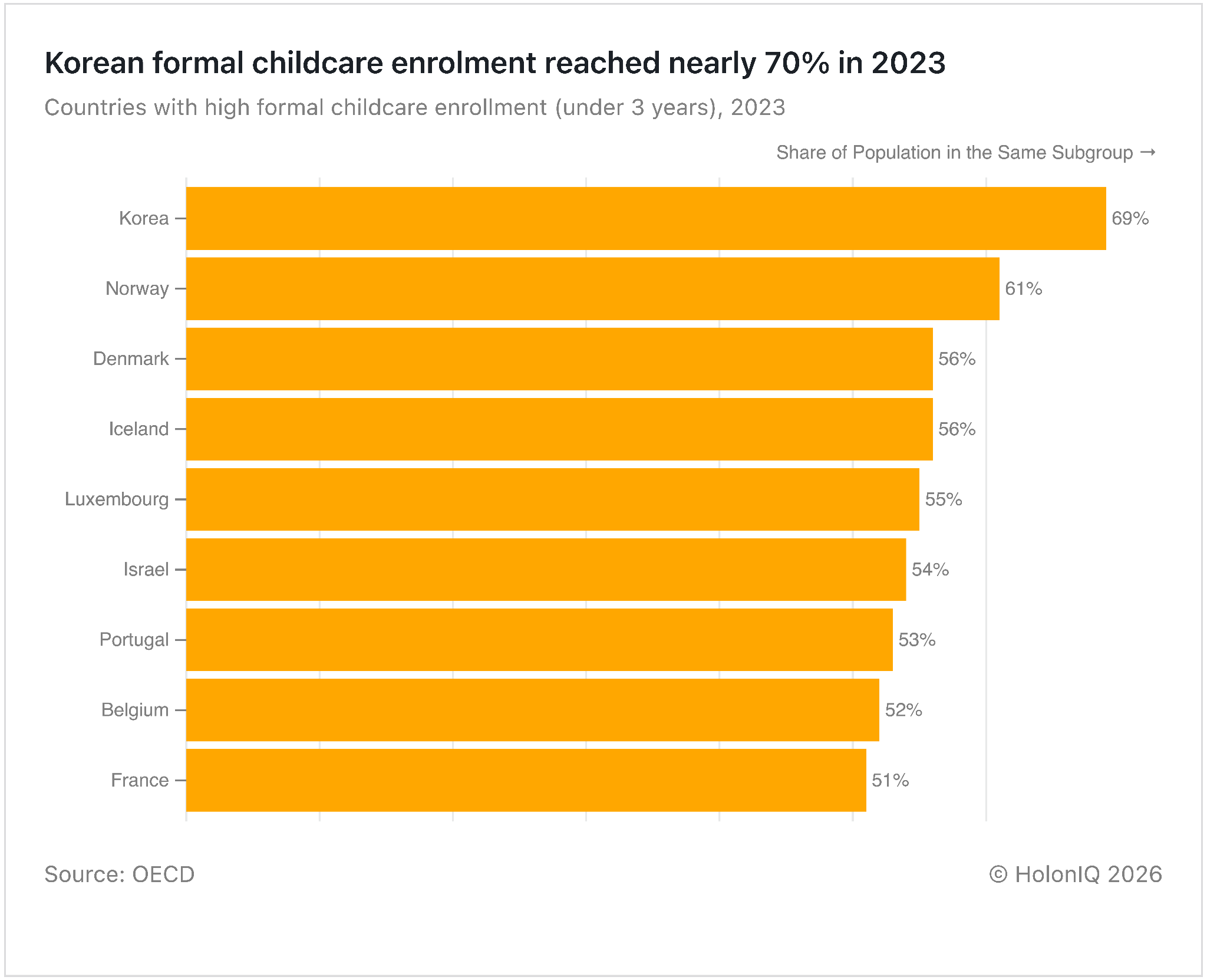 👶 Preschool. Korean childcare enrolment reached nearly 70%