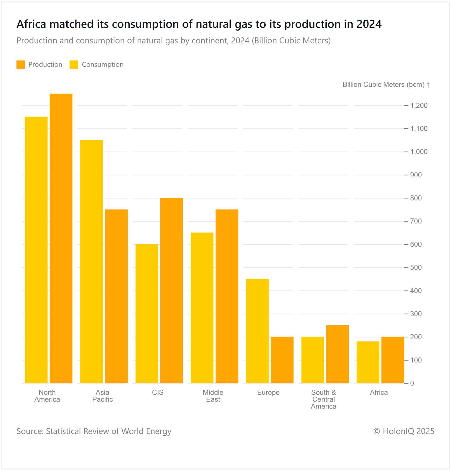 🍃 Africa Maintained its Natural Gas Production and Consumption Equally