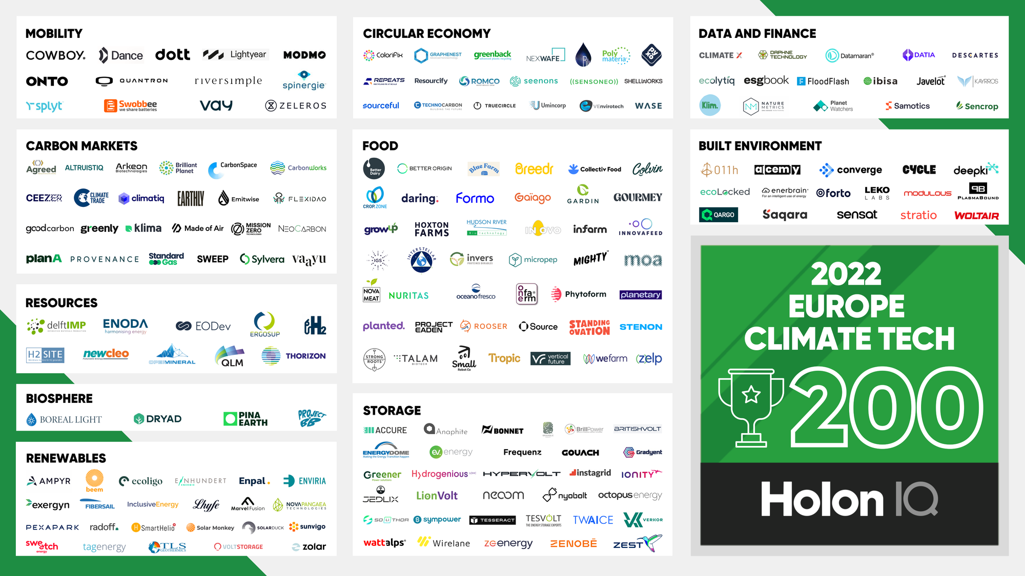The Europe Climate Tech 200 is HolonIQ’s annual list of the most promising startups working in clean energy, zero-emission mobility, and sustainability.