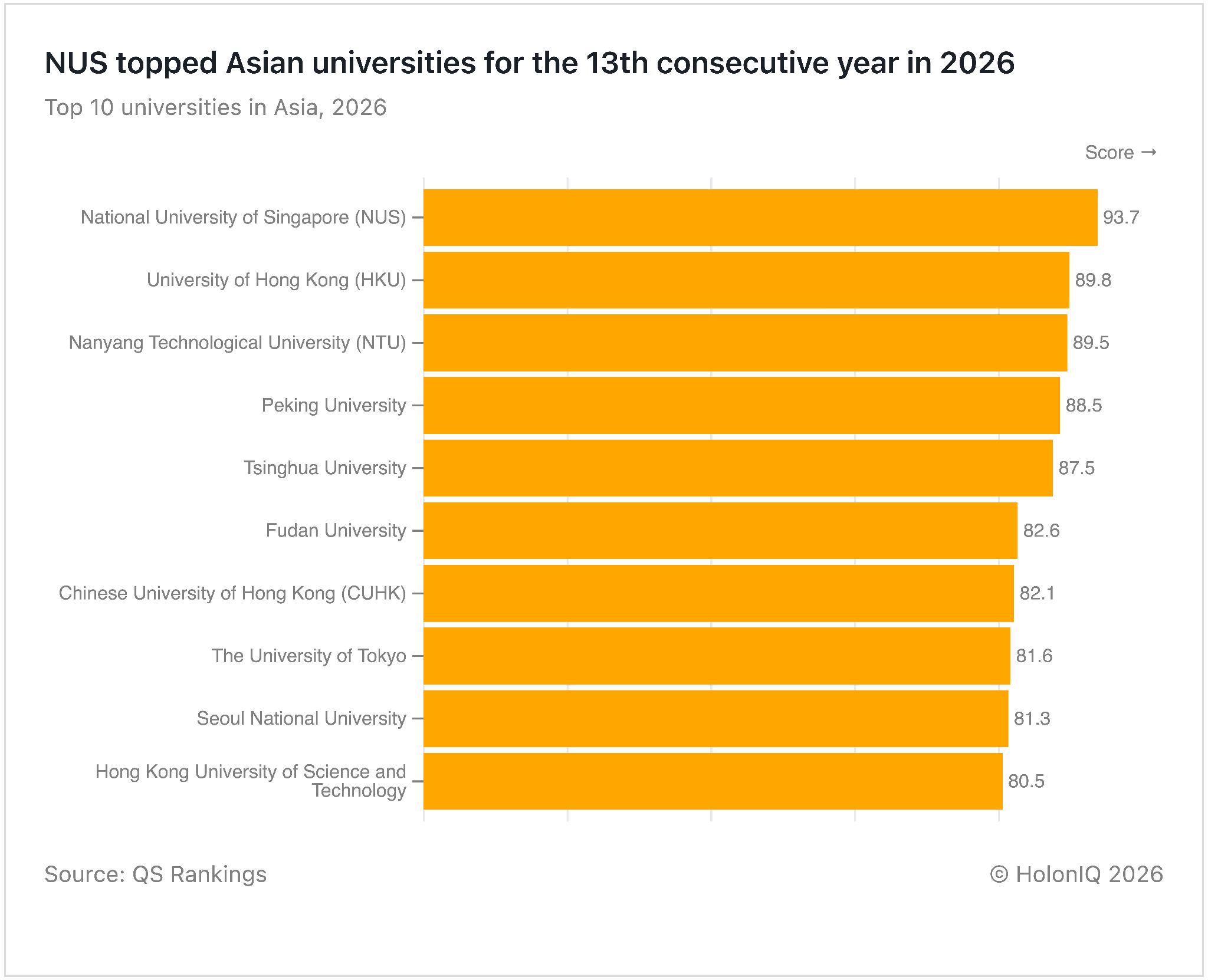 š Higher Education. Top Asian universities score above 80
