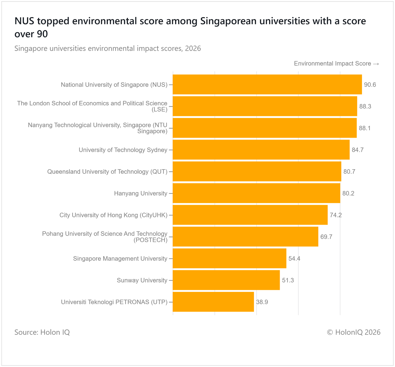 The National University of Singapore leads environmental impact rankings with a score above 90. The result signals how institutions in Singapore are prioritising sustainability performance. Universities are adopting green campuses, low-carbon research labs, and climate curricula as students and employers demand environmental accountability. Continued progress will likely align with national sustainability strategies such as the Singapore Green Plan led by the government. This reinforces Asia’s role in sustainable education innovation.