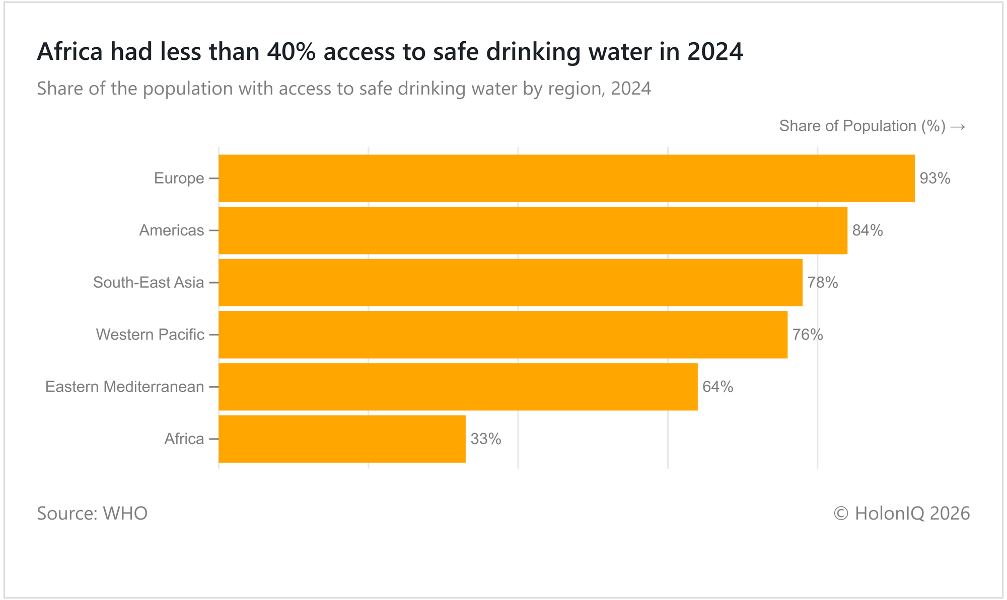 Access to safe drinking water in 2024 ranges from over 90% in Europe to less than 40% in Africa. This gap highlights deep regional inequalities in water infrastructure and service delivery. Safely managed access means water is available on premises, free from contamination and reliably supplied. In Africa, rapid urbanisation, underinvestment and cross-border river tensions affect supply security. The UN Sustainable Development Goal 6 framework, led by the United Nations, promotes universal safe water access by 2030.