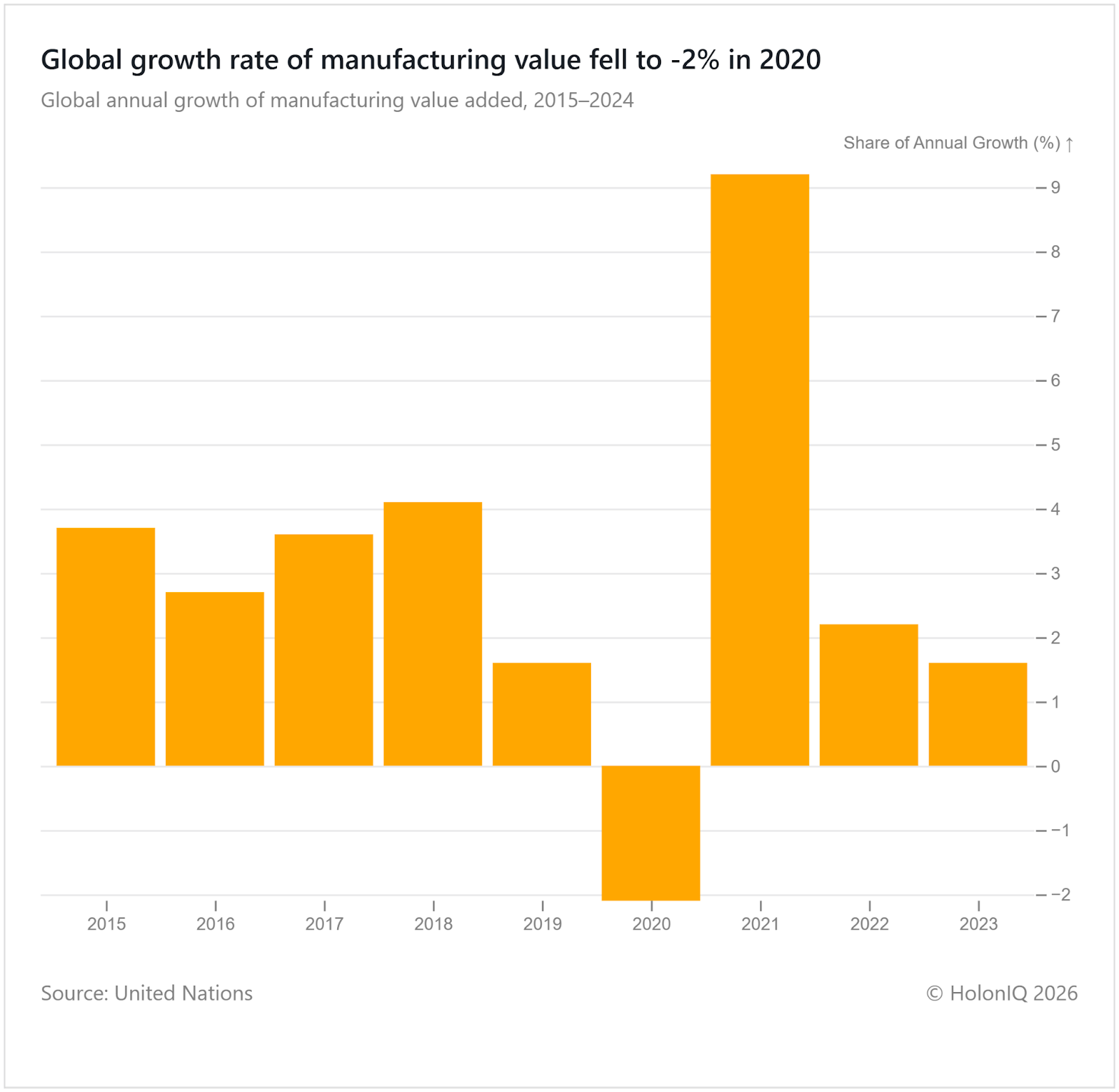 π Advanced Manufacturing. Global growth rate of manufacturing value added hindered by Covid-19