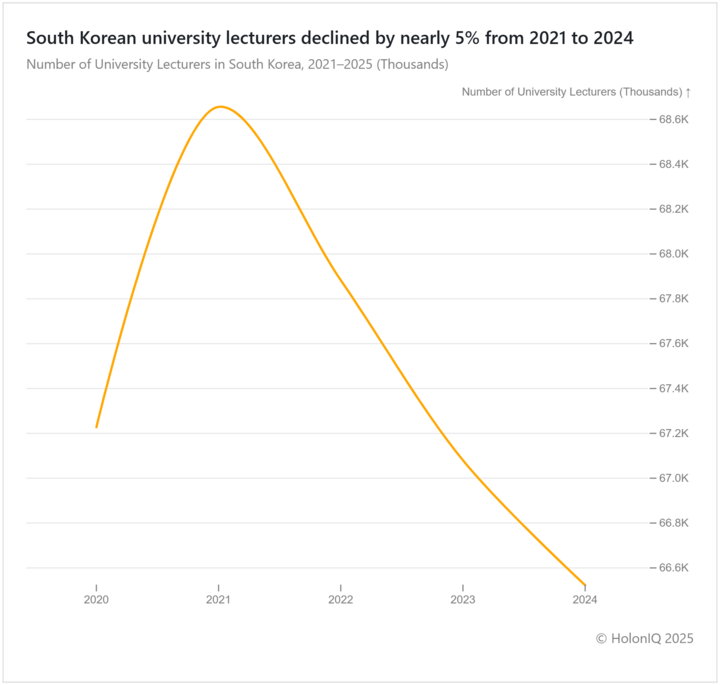 The number of South Korean university lecturers declined by nearly 5% from 2021 to 2024, reflecting ongoing challenges in the teaching sector. Teaching is losing its appeal due to lowering educational standards, rising dropout rates, and unfavourable working conditions. Even top-tier students are increasingly abandoning teacher-training programmes, citing static wages and limited career prospects. The concentration of resources and prestige in the capital further draws talent away from non-capital regions, causing a brain drain. To counter this, the government is planning to decentralise higher education to improve standards and attract faculty nationwide.