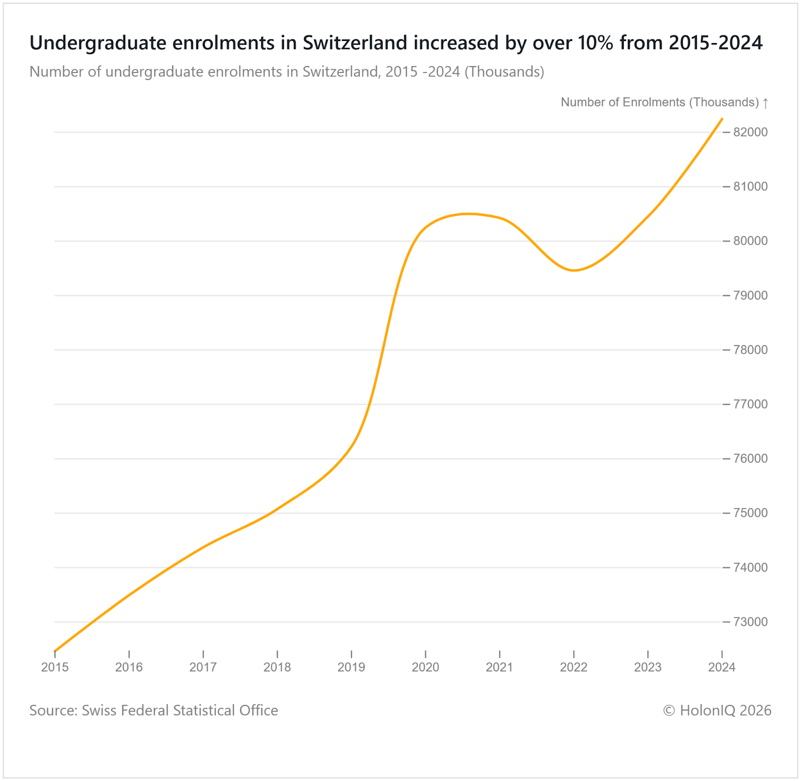 π Higher Education. Switzerland's undergraduate enrolments increased steadily