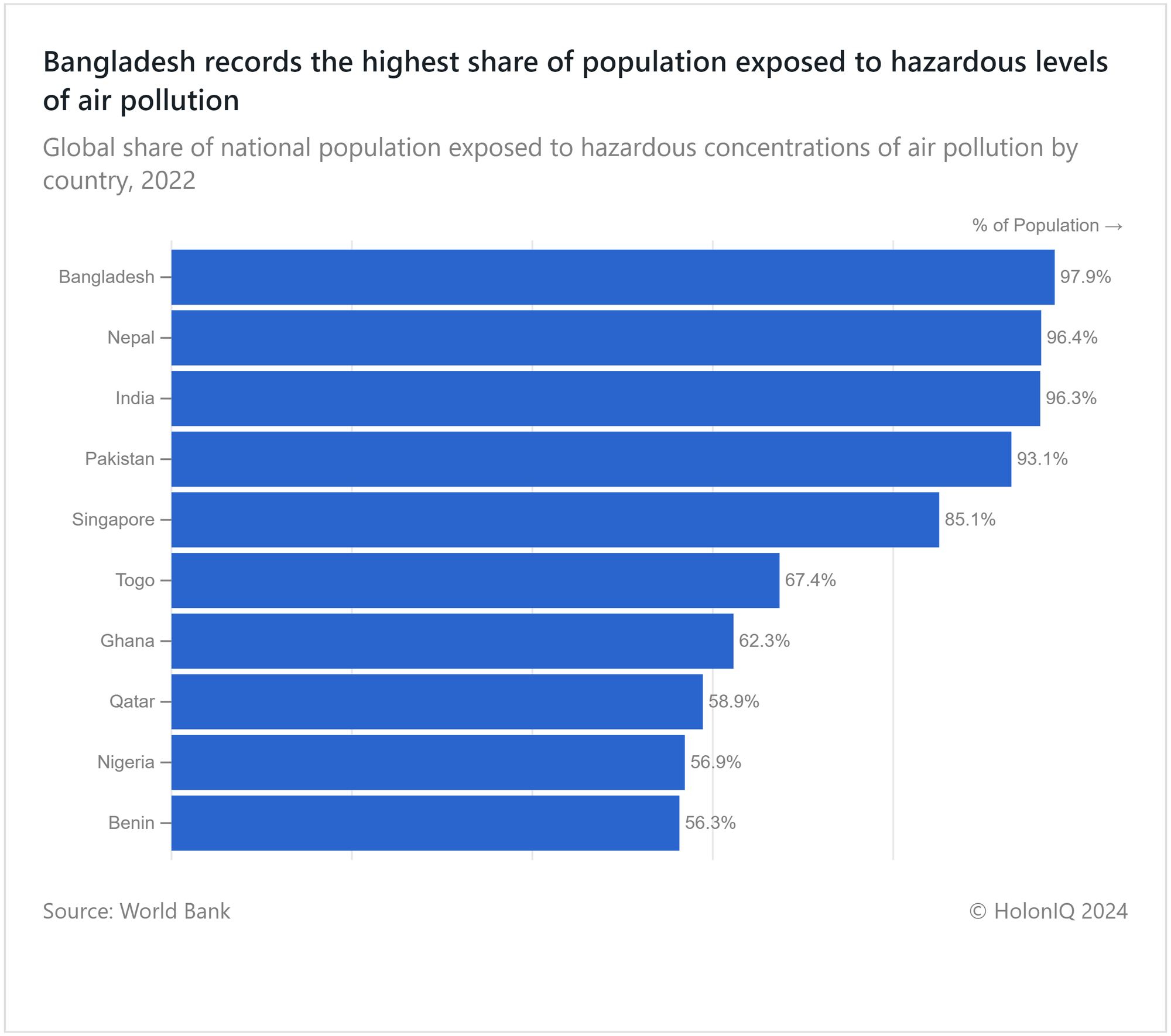 💨 Air Pollution. South Asian nations face greatest exposure to hazardous levels of air pollution