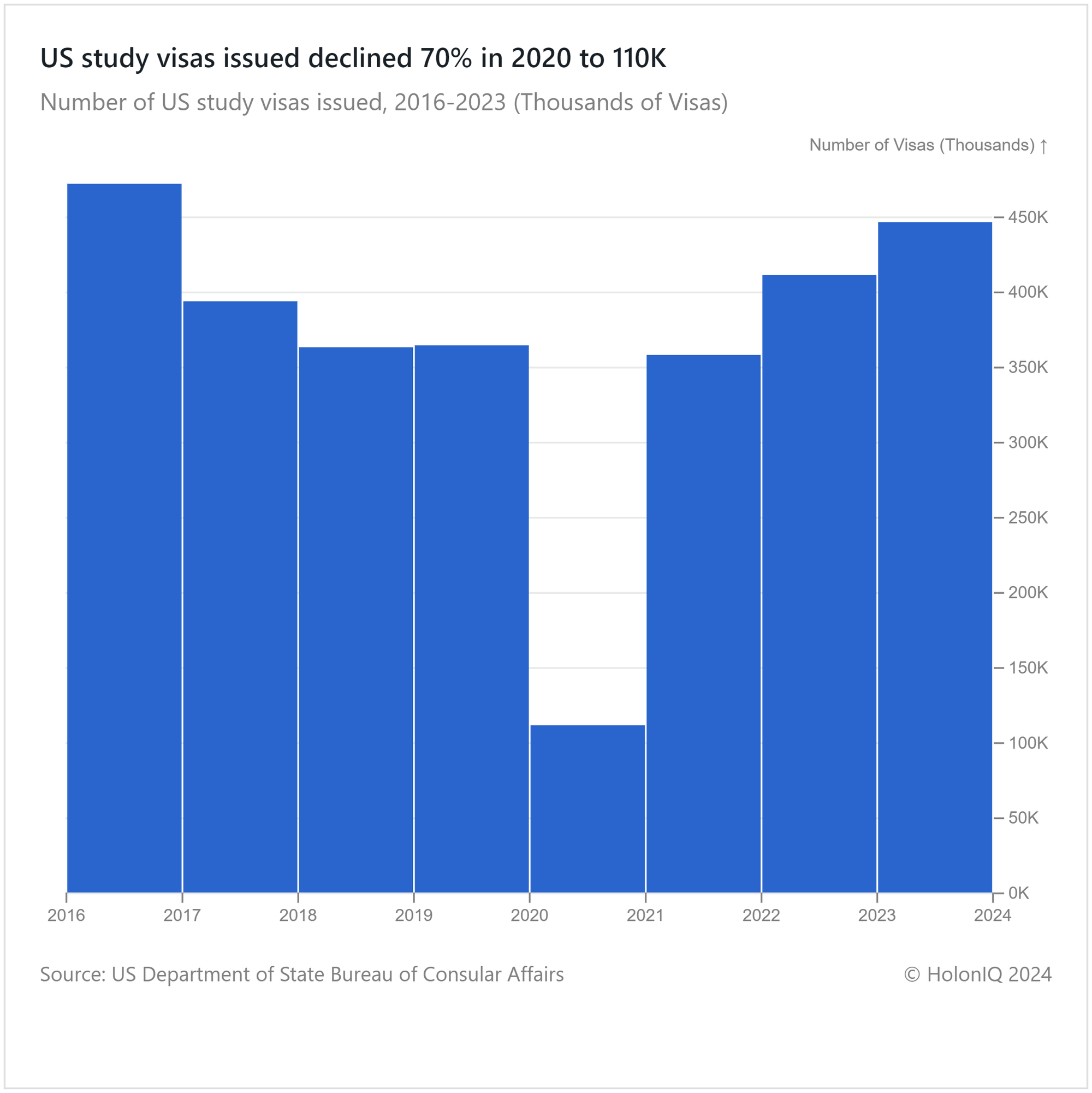 🌏 Student Visas. US study visas issuances recovered 2 years after 70% pandemic slump
