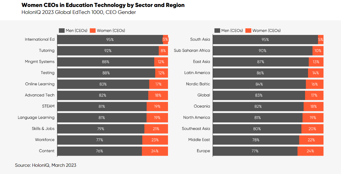 - ๐ Chart Spotlight. Women CEOs in EdTech by sector & region